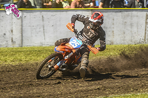 Op zondag 31 augustus 2025 stond de DMX gepland op het cicuit van MC Veendam. Helaas kon deze wedstrijd geen doorgang vinden. Voor de MC NOP een uitgelezen kans om hun afgelaste wedstrijd van 8 juni in te halen. Er was nog wel een puntje, de Masters zouden niet in Veendam rijden en kregen dus een wedstrijd toegevoegd. Aangezien het overgrote meerendeel van de geraadpleegde Masters voor was, werd besloten dat het door kon gaan.Of het aan de redelijk slechte weersvoorspelling lag of dat er een andere oorzaak was is onbekend, maar het aantal inschrijvingen bleef wat achter. Alleen bij de Masters waren er meer inschrijvingen dan oorspronkelijk in Juni. Het weer was wonderbaarlijk genoeg primal, 's morgens sloeg het een kort ogenblik wel even nat aan, maar de rest van de dag bleef het droog. Het werd gewoon mooi weer met regelmatig zon. Er moest zelfs gesproeid worden om het stof in toom te houden. De wedstrijden verliepen vlot zodat het een lekker compacte wedstrijd dag was. Jelmer zette in de tijdtraining een prima derde trainingstijd. In de eerste manche had hij kopstart en hij wist de koppositie ook een aantal ronden vast te houden. Toen werd hij ingehaald door Remi Krap en Klaas Hofstede waarna Jelmer de wedstrijd gecontroleerd uitreed op een derde plek. De tweede manche leek Jelmer weer kopstart te hebben maar als een duvel uit een doosje stak Leon Huisman voorbij zodat die de holeshot had. Jelmer haalde hem al snel in en lag even op kop tot Remi hem naar de tweede plek verwees. Klaas was bij de start gevallen en moest als laatste aan de wedstrijd beginnen. Maar in de tweede helft van de wedstrijd ging Klaas Jelmer voorbij en ging op jacht naar Remi. Helaas kreeg Klaas een lekke band waardoor hij terug viel naar de vijfde plek en Jelmer tweede werd achter Remi. Remi was hiermee dagwinnaar met een tweede en eerste plek, Jelmer tweede met een derde en tweede plek en Klaas derde met een overwinning en een vijfde positie. Voor de overige uitslagen klikt u hier. |